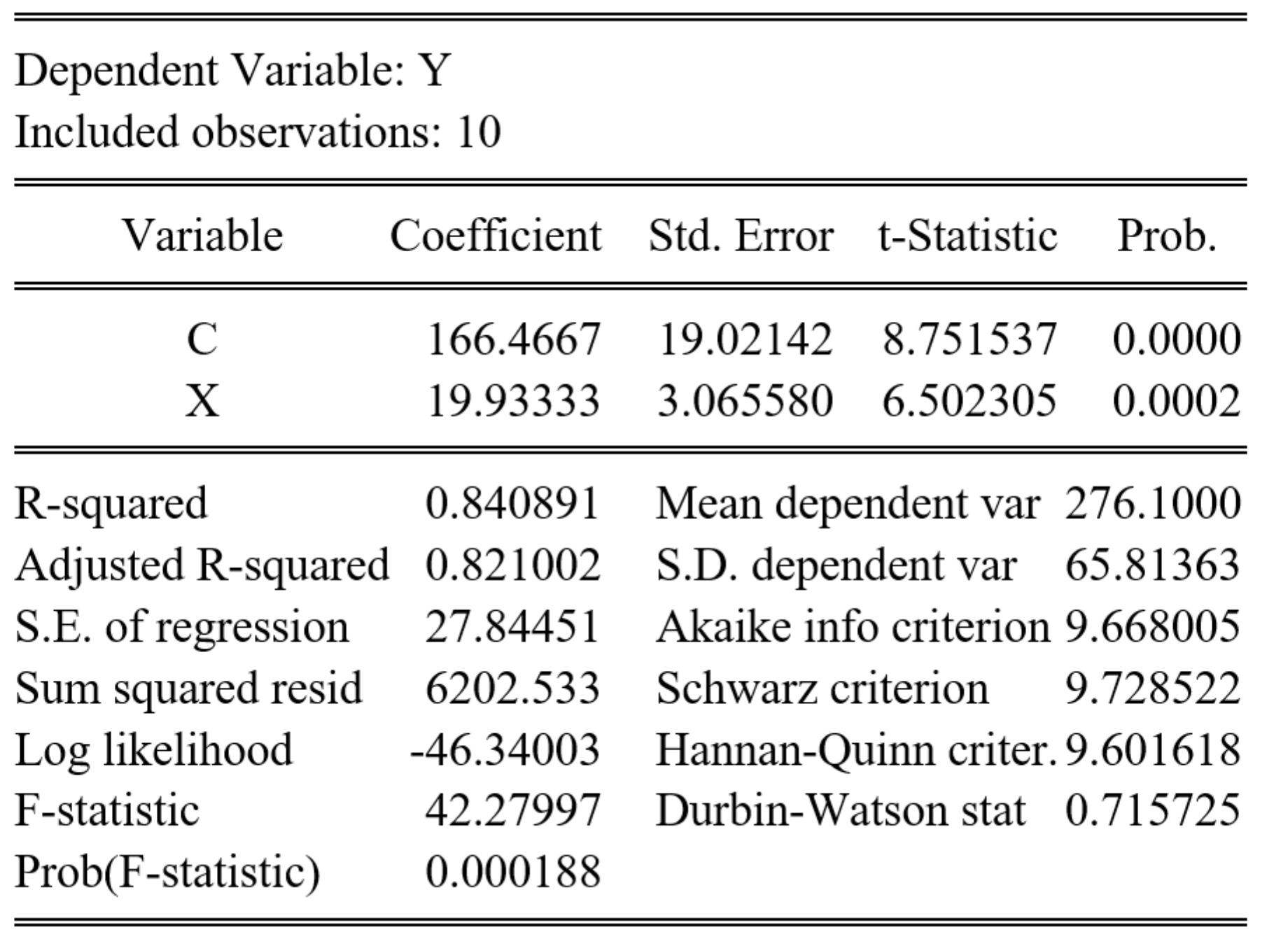 \[ \boldsymbol{\hat{\beta}}= \begin{bmatrix} 300.2863 & 0.742 & 8.0436 \end{bmatrix} ^{\prime} \]