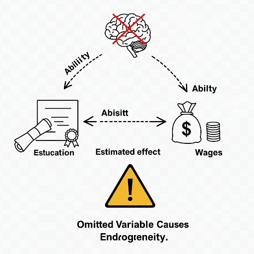 In applied econometrics, endogeneity usually arises in one of four ways:
