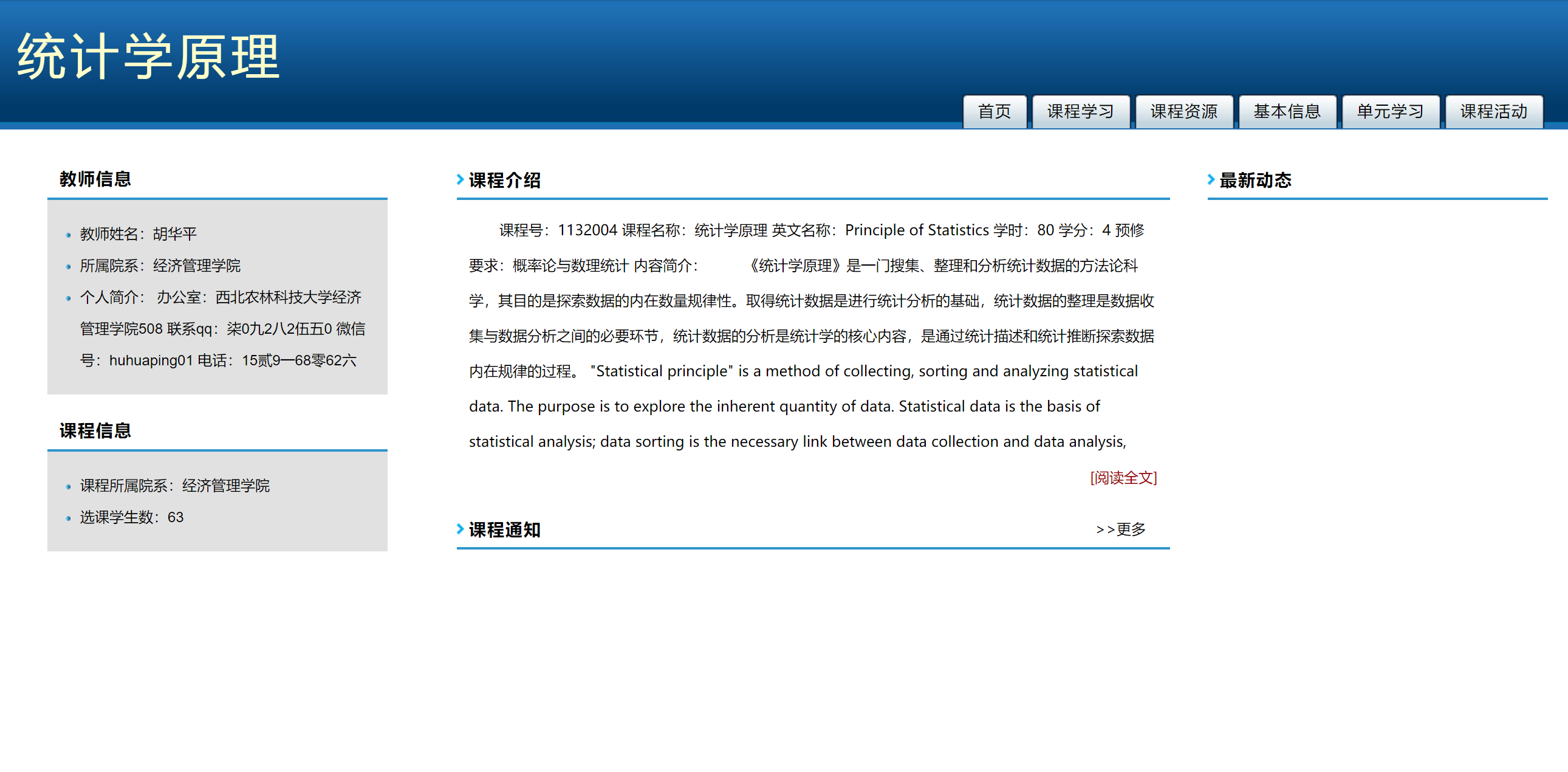 西北农林科技大学在线教育综合平台,我的课程《统计学原理》(胡华平)在平台上运行多年。链接