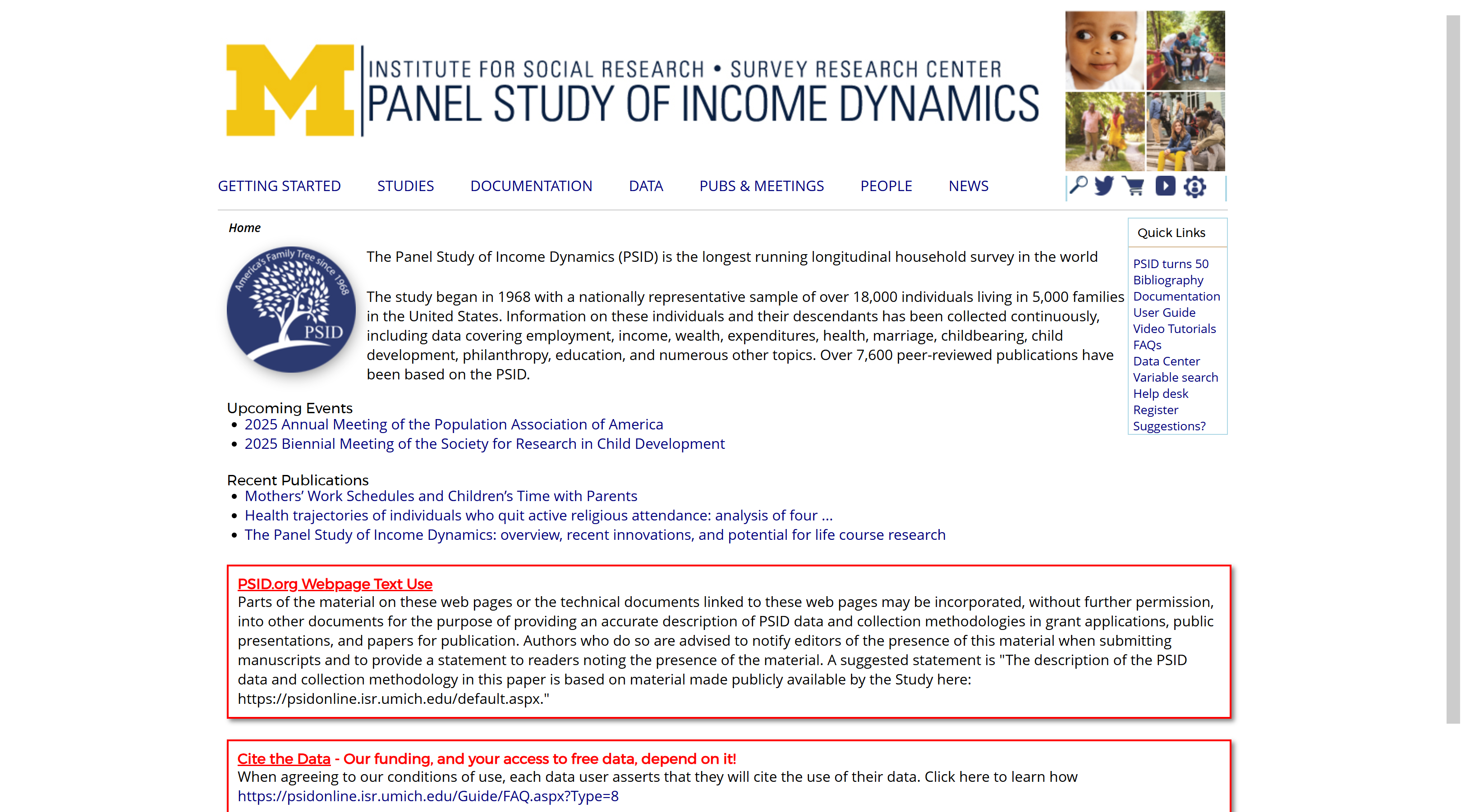 美国芝加哥大学-收入动态调查面板数据(PSID)