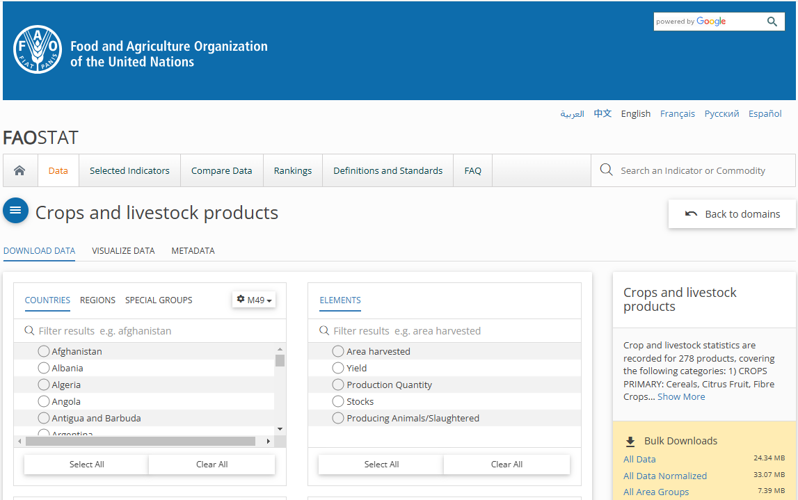 国际粮农组织FAO粮食和畜产品数据集:FAO stat。