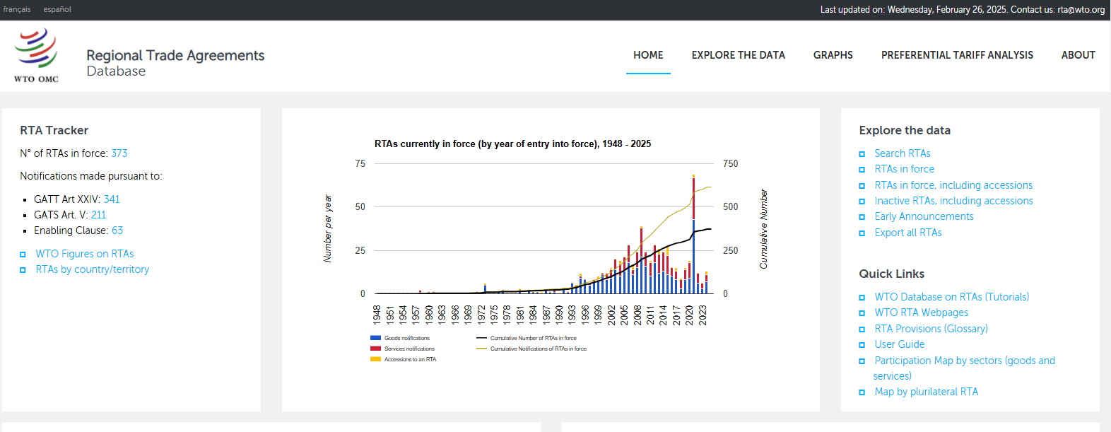 世贸组织区域贸易协定数据集:Regional Trade Agreements Database。