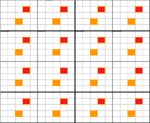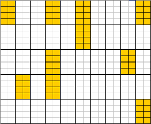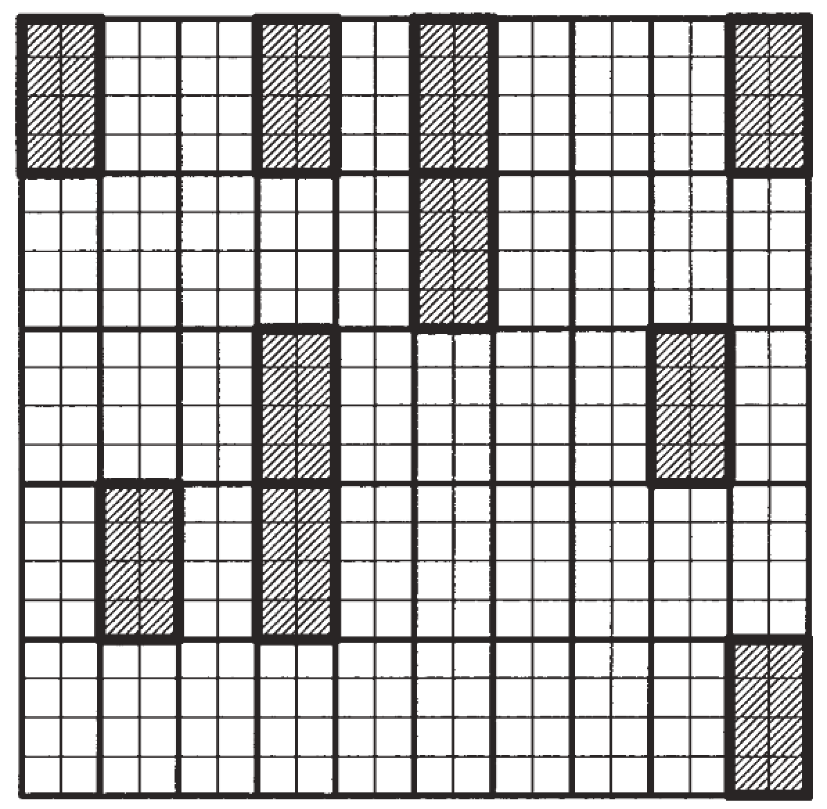 样本中的主要抽样单元(PSU)的数量 \(n=10\) :随机抽中的2*4中型方框,共抽中10个2*4中型着色方框。