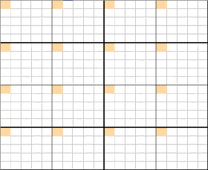 每个主要抽样单元(PSU)中次要抽样单元(SSU)的数量 \(M_i=16\) :所有5*5中型方框,共有16个。