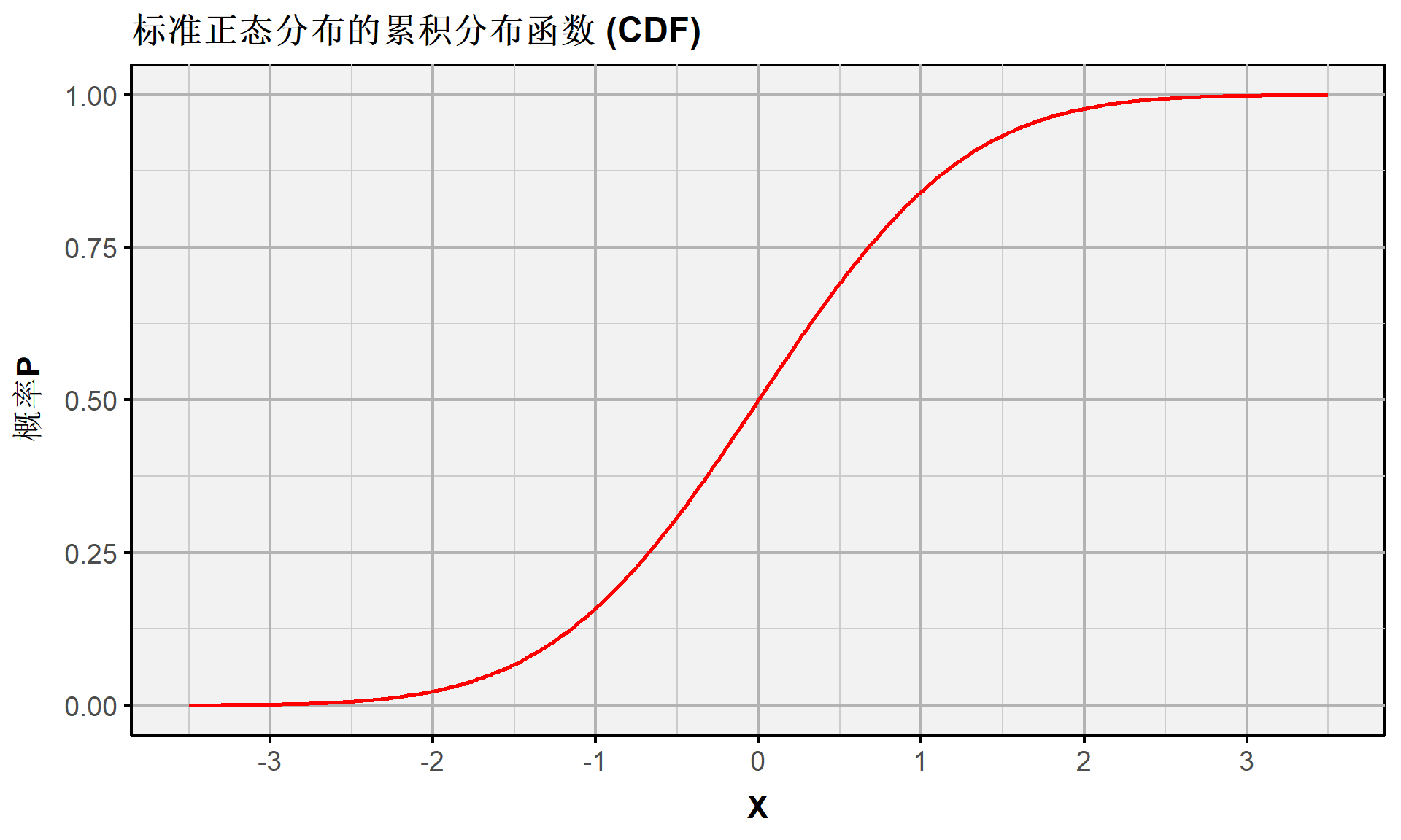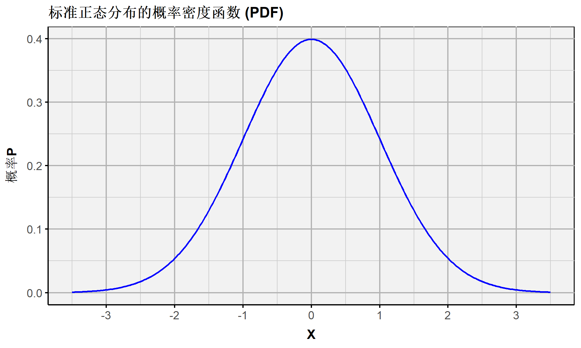 其中,标准正态分布属于一种特殊形式的正态分布,其期望为0,方差为1,一般记为: \(X \sim Z(0,1)\) ,其概率密度函数(PDF)一般记为 \(\phi\) ,其累积概率密度函数(CDF)一般记为 \(\Phi\) ,也即有: