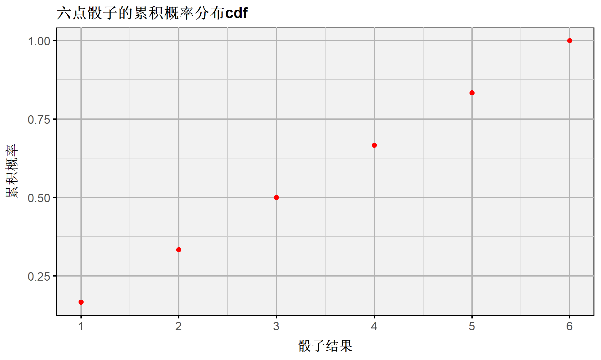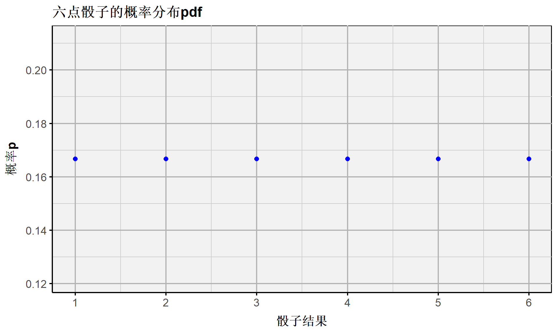 六点骰子的样本空间(sample space)为: \(\{1,2,3,4,5,6\}\) ,随机摇一次骰子结果可能是: