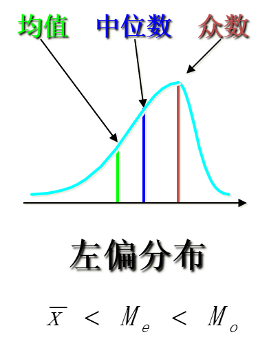偏态(skewness):对数据分布偏斜程度的测度*。