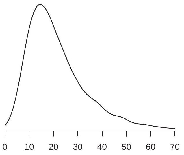 \({ }^{3}\) The expectation is sensitive to pertubations in the tails of the distribution. in the presence of substantial skewness or thick tails, both which are features of the wage distribution as can be seen in Figure 2.1(a). Another way of viewing this is that \(64 %\) of workers earn less than the mean wage of \(\$ 23.90\), suggesting that it is incorrect to describe the mean \(\$ 23.90\) as a “typical” wage rate.