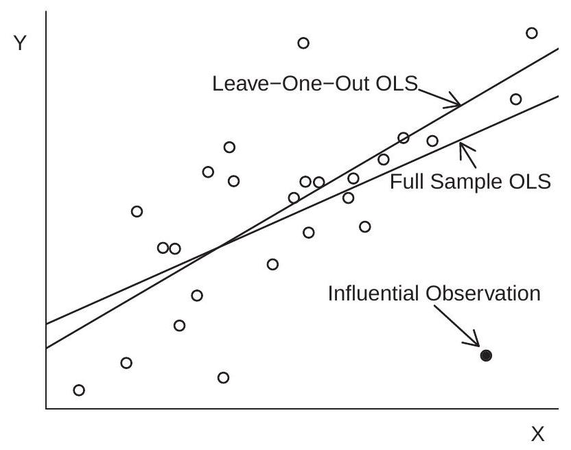 \[ \widehat{\sigma}_{(-i)}^{2}=\frac{n}{n-1} \widehat{\sigma}^{2}-\frac{\widehat{e}_{i}^{2}}{(n-1)\left(1-h_{i i}\right)} . \]