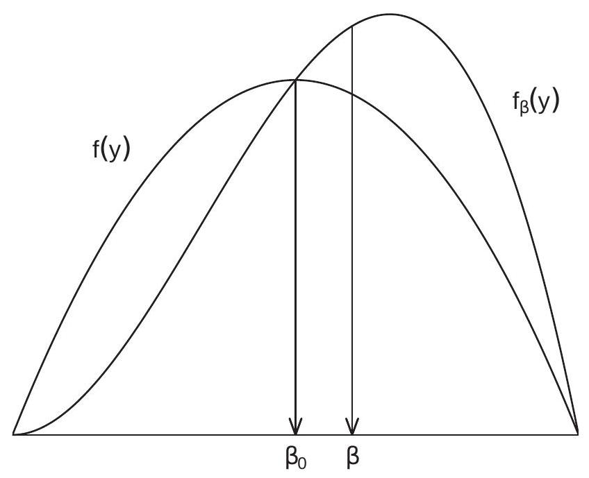 the last equality because \(\mathbb{E}\left[\psi_{c}(\boldsymbol{Y})\right]=0\). Together, these facts imply that \(f_{\beta}\) is a valid density function, and over \(\beta \in B\) is a parametric family for \(\boldsymbol{Y}\). Evaluated at \(\beta_{0}=0\), which is in the interior of \(B\), we see \(f_{0}=f\). This means that \(f_{\beta}\) is a correctly-specified parametric family with the true parameter value \(\beta_{0}\).