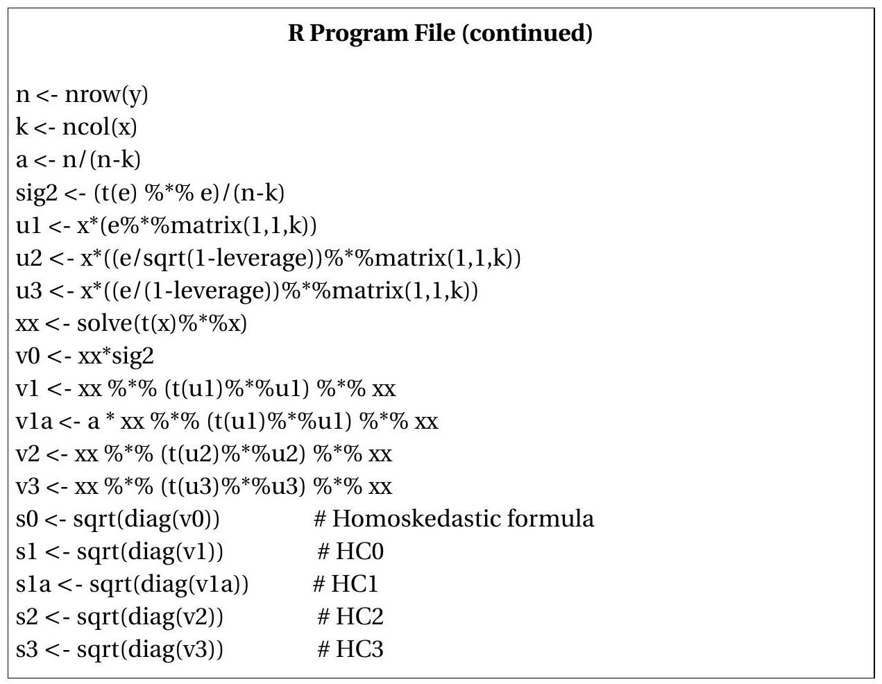 Exercise 4.25 Continue the empirical analysis in Exercise 3.26. Calculate standard errors using the HC3 method. Repeat in your second programming language. Are they identical?