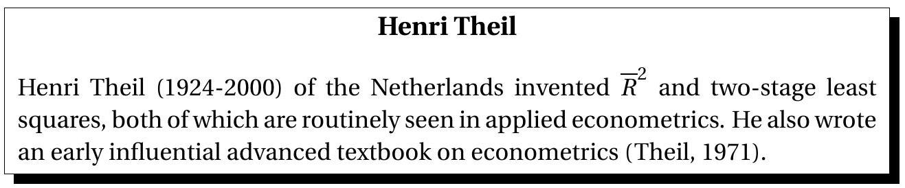 We will consider both the general case of heteroskedastic regression where the conditional variance \(\mathbb{E}\left[e^{2} \mid X\right]=\sigma^{2}(X)\) is unrestricted, and the specialized case of homoskedastic regression where the conditional variance is constant. In the latter case we add the following assumption.
