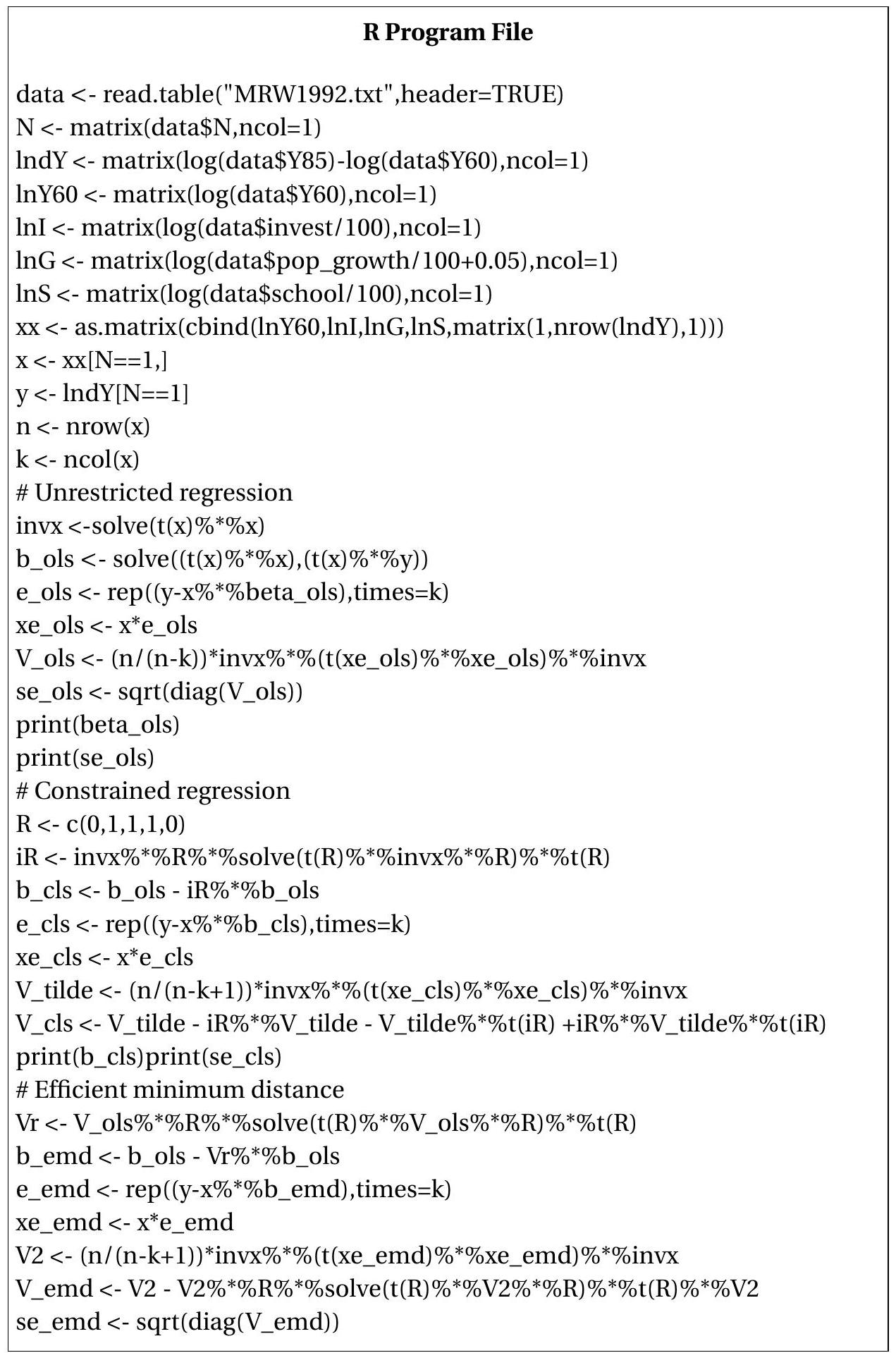 \[ \boldsymbol{V}_{\beta}^{*}=\boldsymbol{V}_{\beta}-\boldsymbol{V}_{\beta} \boldsymbol{R}\left(\boldsymbol{R}^{\prime} \boldsymbol{V}_{\beta} \boldsymbol{R}\right)^{-1} \boldsymbol{R}^{\prime} \boldsymbol{V}_{\beta} . \]