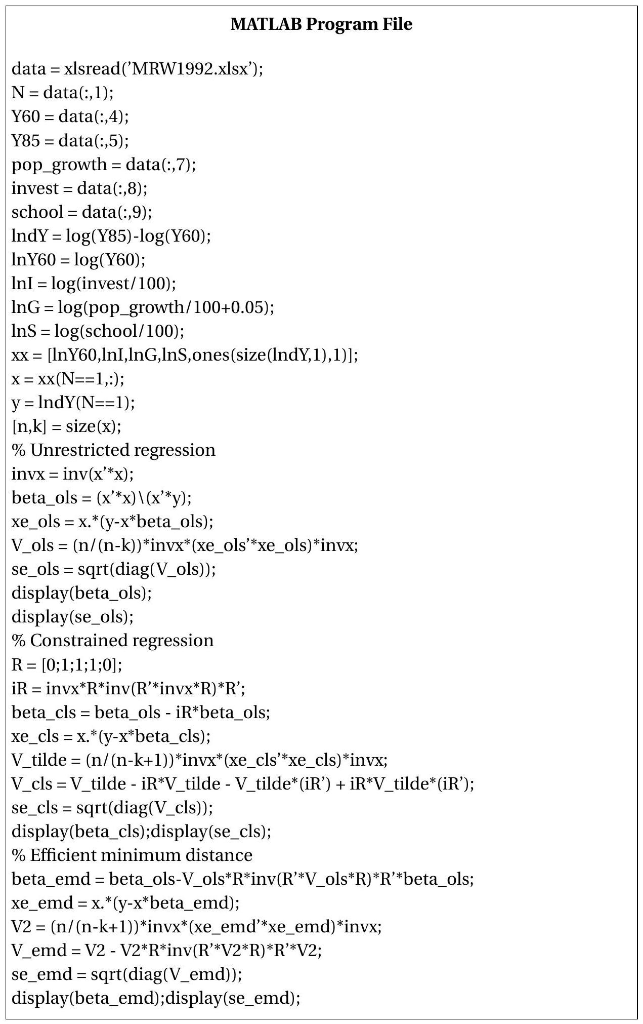 While (8.8) is a general formula for CLS, in most cases the estimator can be found by applying least squares to a reparameterized equation. To illustrate let us return to the first example presented at the beginning of the chapter - a simple exclusion restriction. Recall that the unconstrained model is