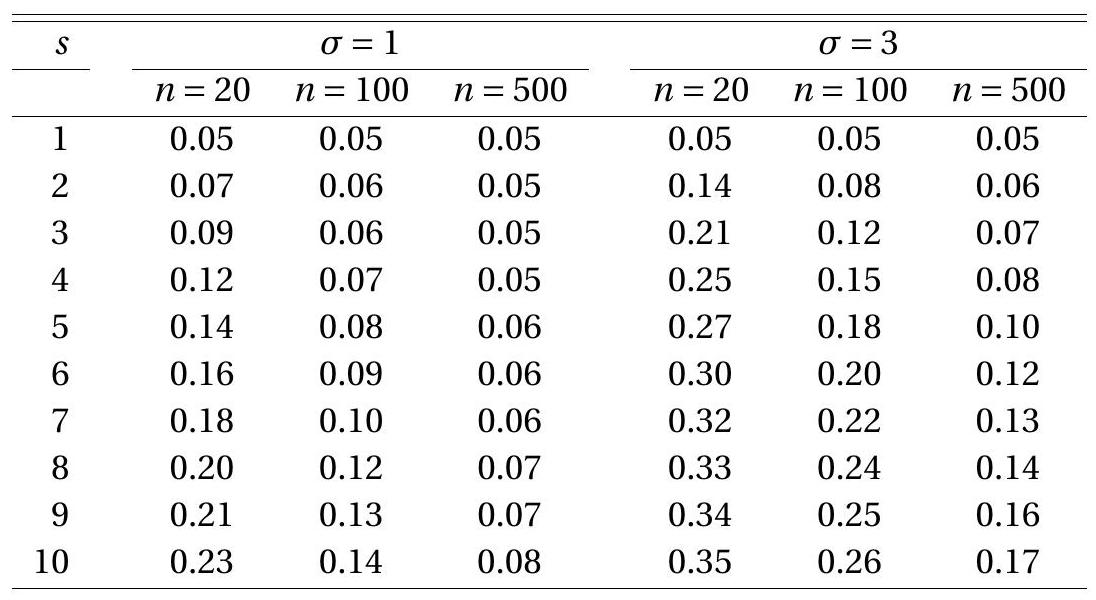 Exercise 9.23 Let \(T\) be a test statistic such that under \(\mathbb{M}_{0}, T \underset{d}{\longrightarrow} \chi_{3}^{2}\). Since \(\mathbb{P}\left[\chi_{3}^{2}>7.815\right]=0.05\), an asymptotic \(5 %\) test of \(\mathbb{H}_{0}\) rejects when \(T>7.815\). An econometrician is interested in the Type I error of this test when \(n=100\) and the data structure is well specified. She performs the following Monte Carlo experiment.