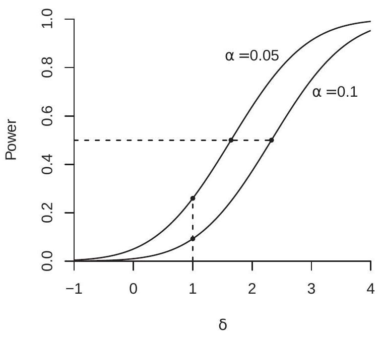 In the dominant approach to hypothesis testing the goal of test construction is to have high power subject to the constraint that the size of the test is lower than the pre-specified significance level. Generally, the power of a test depends on the true value of the parameter \(\theta\), and for a well-behaved test the power is increasing both as \(\theta\) moves away from the null hypothesis \(\theta_{0}\) and as the sample size \(n\) increases.