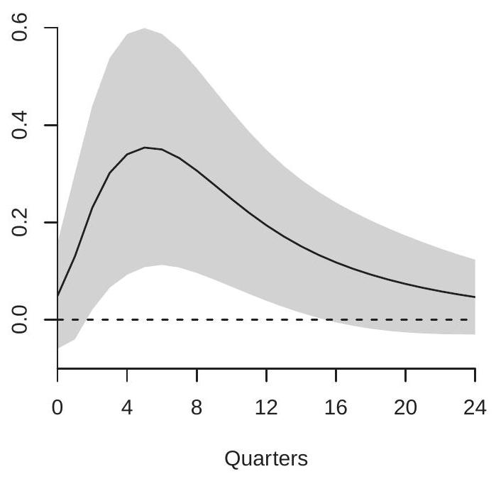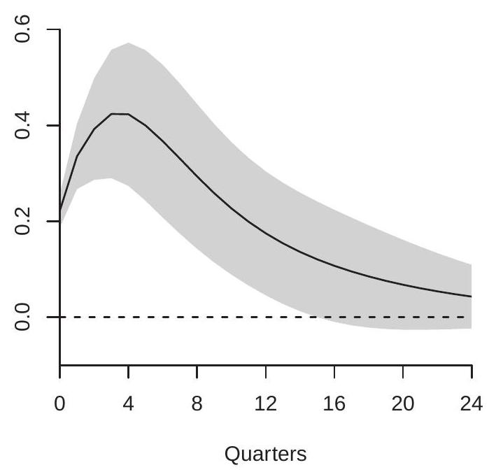 Estimate the structural impulse responses of the level of GDP with respect to the three shocks. Interpret the results.