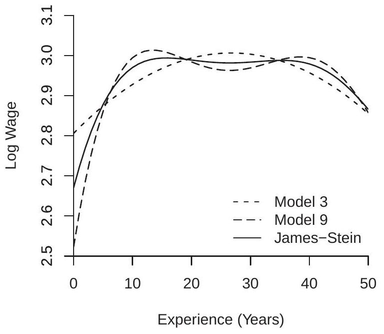 Exercise 28.12 Using the cps09mar dataset perform an analysis similar to that presented in Section \(28.18\) but instead use the sub-sample of Hispanic women. This sample has 3003 observations. Which models are selected by BIC, AIC, CV and FIC? (The precise information criteria you examine may be limited depending on your software.) How do you interpret the results? Which model/estimate would you select as your preferred choice?